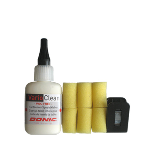 Special table tennis glue. DONIC Vario Clean Glue has been developed according to the new ITTF regulations.