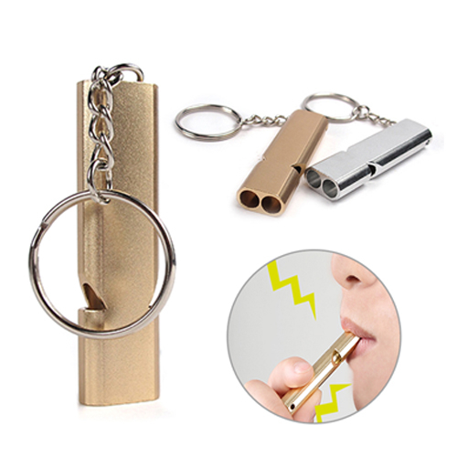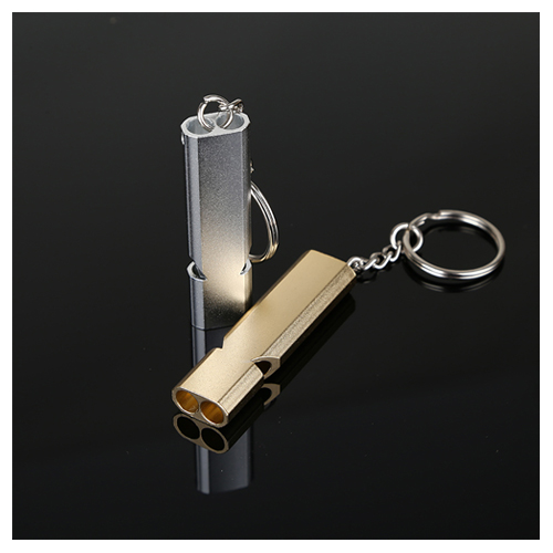 New modern design high quality double tube sports coach whistle in two colour options gold or silver.